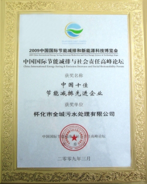2009年3月在胡錦濤、溫家寶等中央領(lǐng)導(dǎo)出席的中國國際節(jié)能減排與新能源科技博覽會和高峰論壇上評為“中國十佳節(jié)能減排先進(jìn)企業(yè)”。